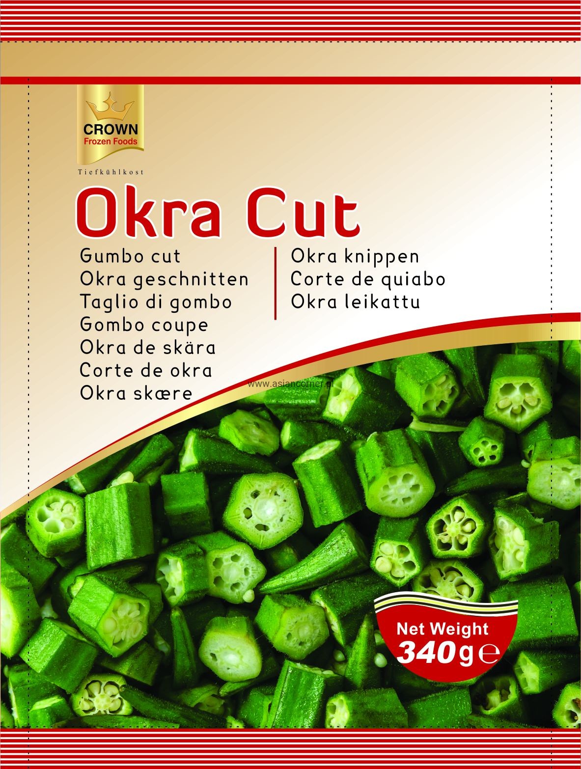 Crown Okra są starannie selekcjonowane ręcznie z gospodarstw, które zachowują najwyższą jakość i świeżość. Najlepsza okra jest następnie myte, krojone i utrzymywane w dobrym stanie odżywczym.