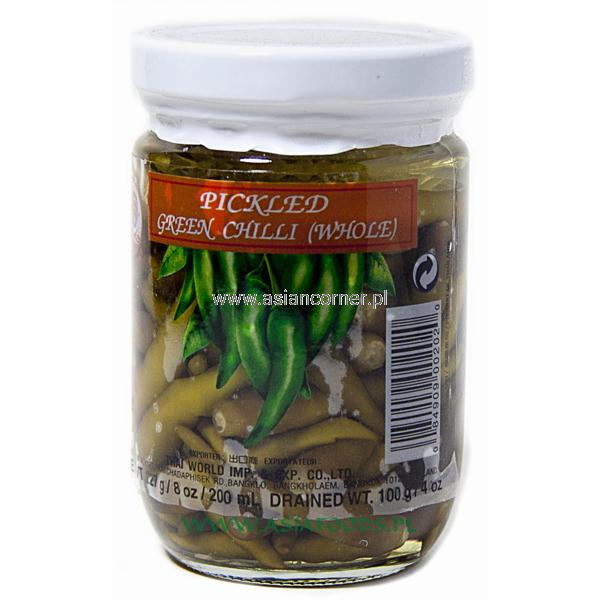 Bardzo pikantne zielone papryczki chili w zalewie, popularny składnik dań kuchni azjatyckiej. Rewelacyjny zamiennik świeżego chili.